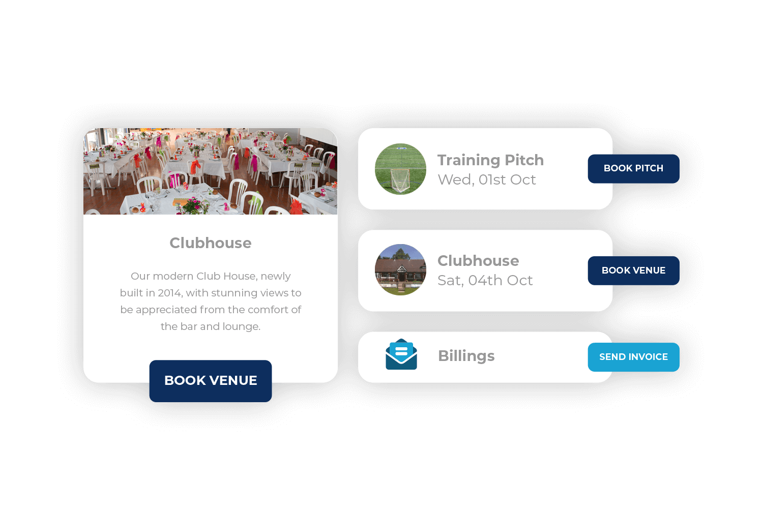 Accept online bookings for pitch and venue hire