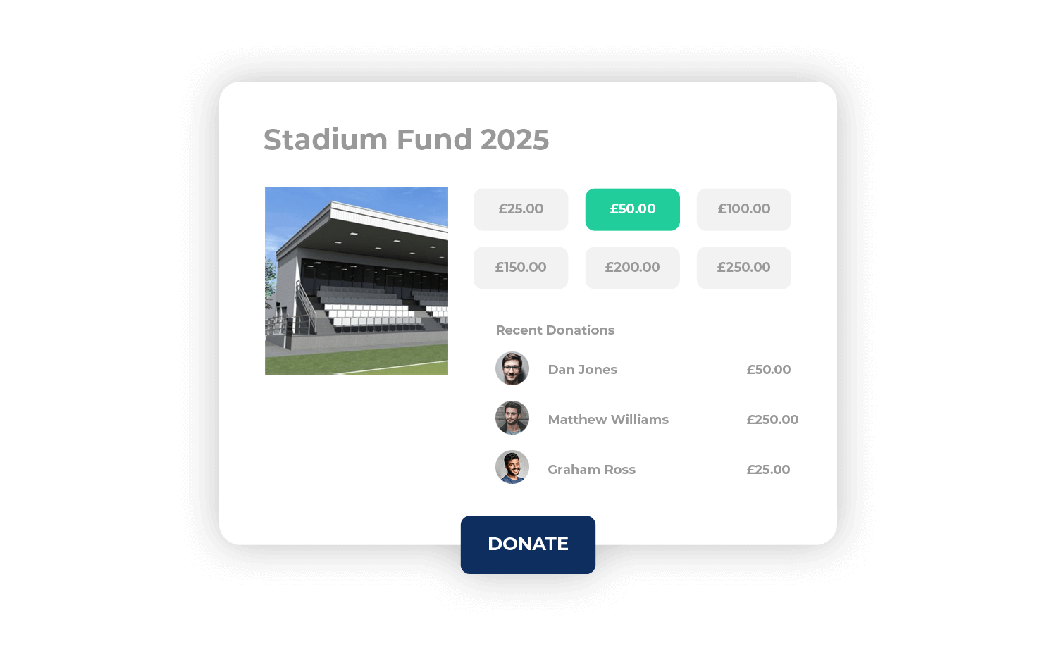 Create a club fundraising page and collect donations for a club cause; new pitches, changing room refurbishment or junior tour - anything!
