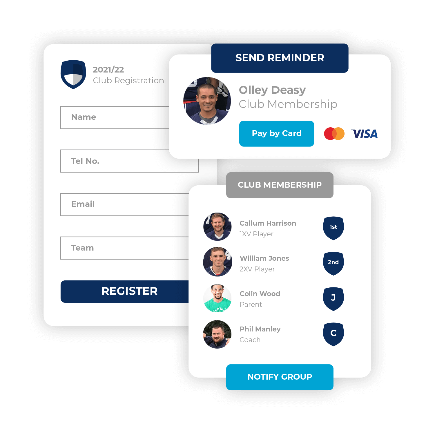 Create a secure database of your members and use this to drive club and team management. No more excel spreadsheets or paper records!